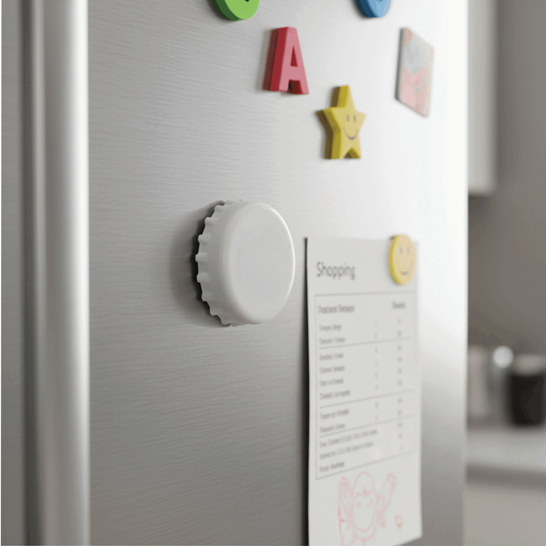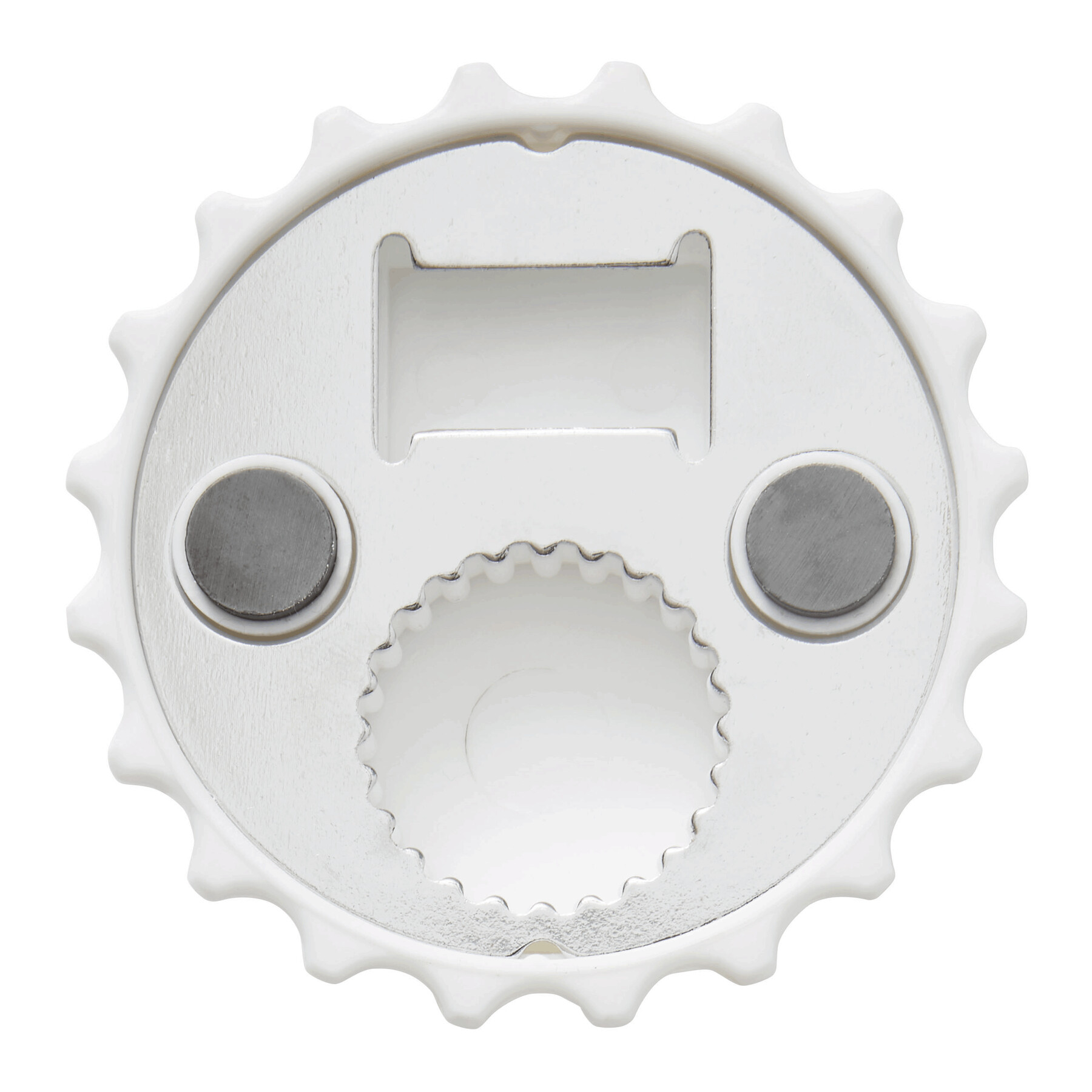 Abrebotellas CROWNCAP: apto para tapones corona y tapones de rosca metálicos, con dos imanes para fijar, por ejemplo, a un frigorífico.