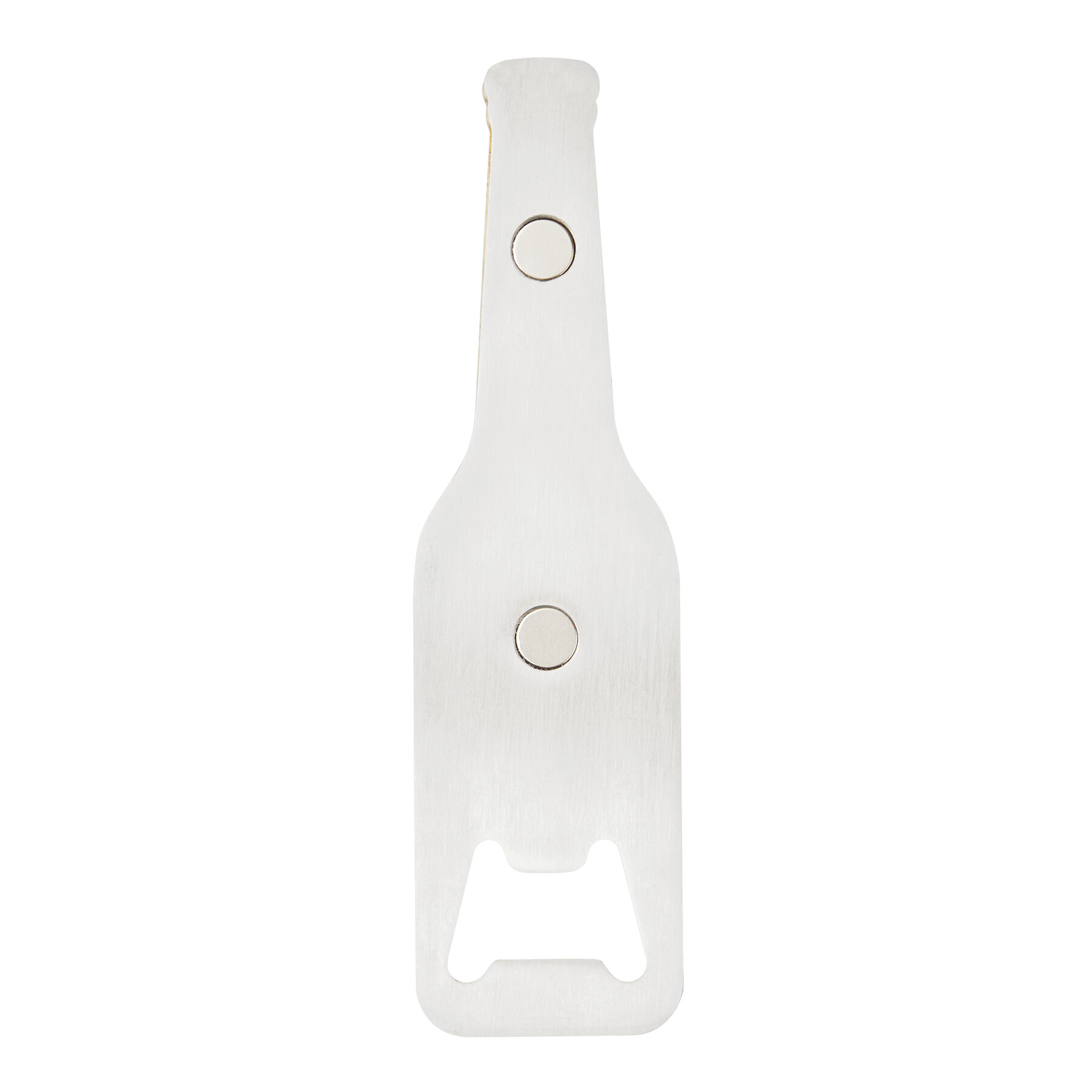 Abridor de botellas de bambú MY BEER: diseño en forma de botella, parte trasera de acero inoxidable con imán