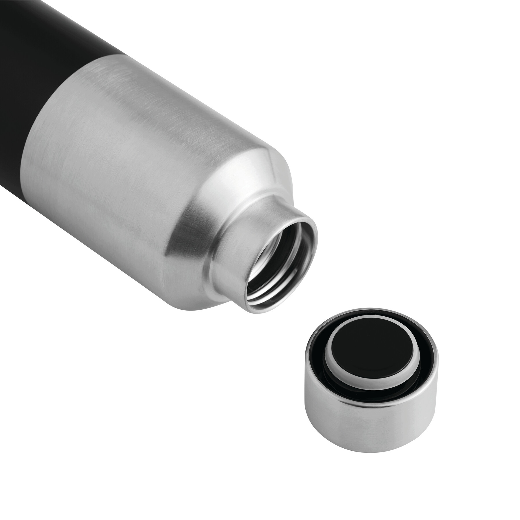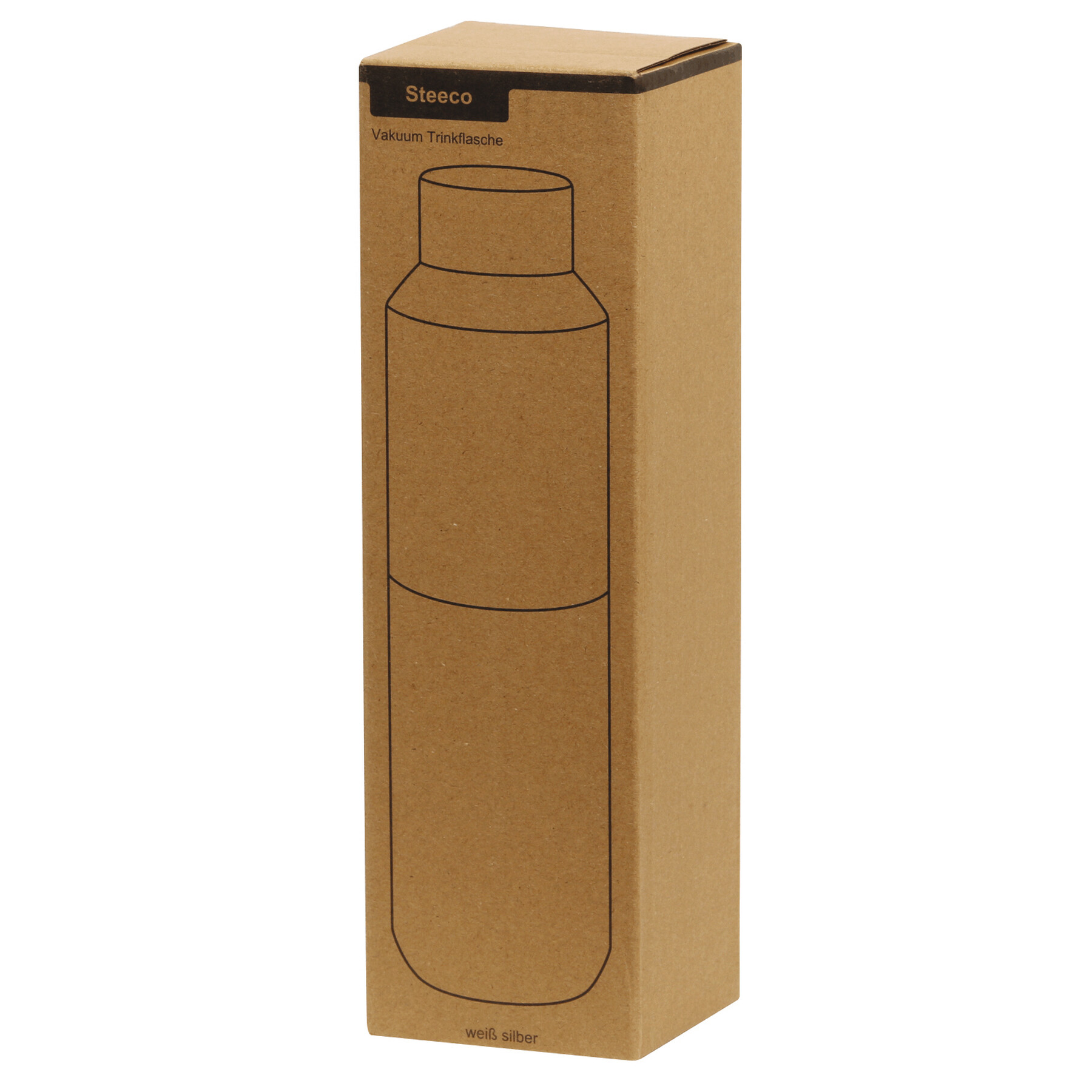 Bidón termo STEECO, de doble pared: interior de acero inoxidable reciclado, exterior de acero inoxidable, tapa con tapón de rosca seguro y anillo de sellado de silicona, capacidad aprox. 600 ml, mantiene el calor durante aprox. 8 horas y el frío hasta 12 horas, en caja.