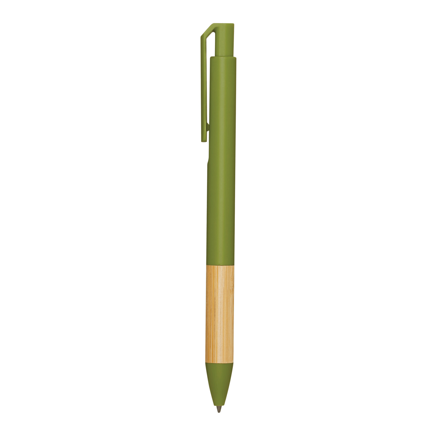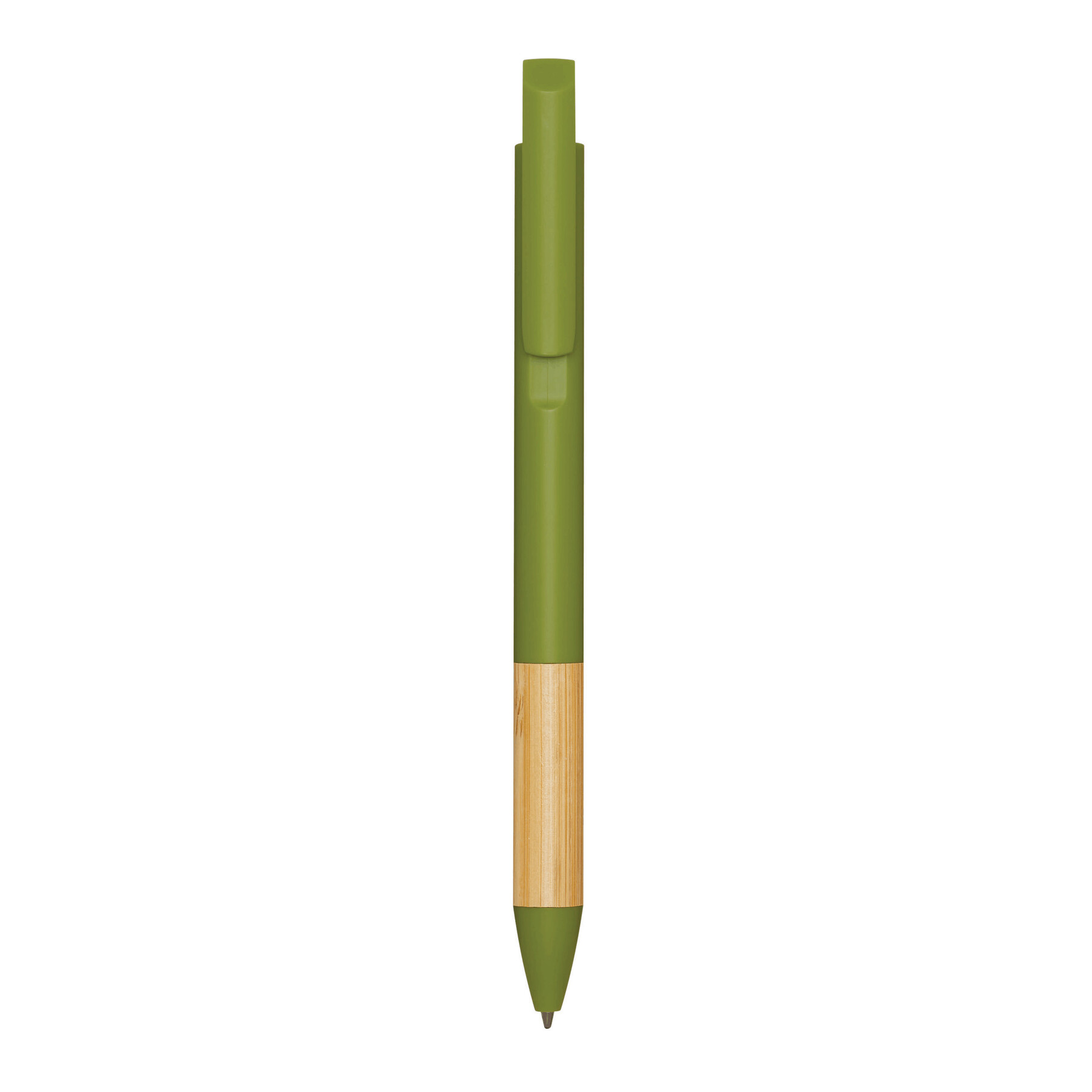 Bolígrafo ANDANTE: cuerpo de plástico reciclado, mecanismo de pulsación, empuñadura de bambú barnizado, tinta azul