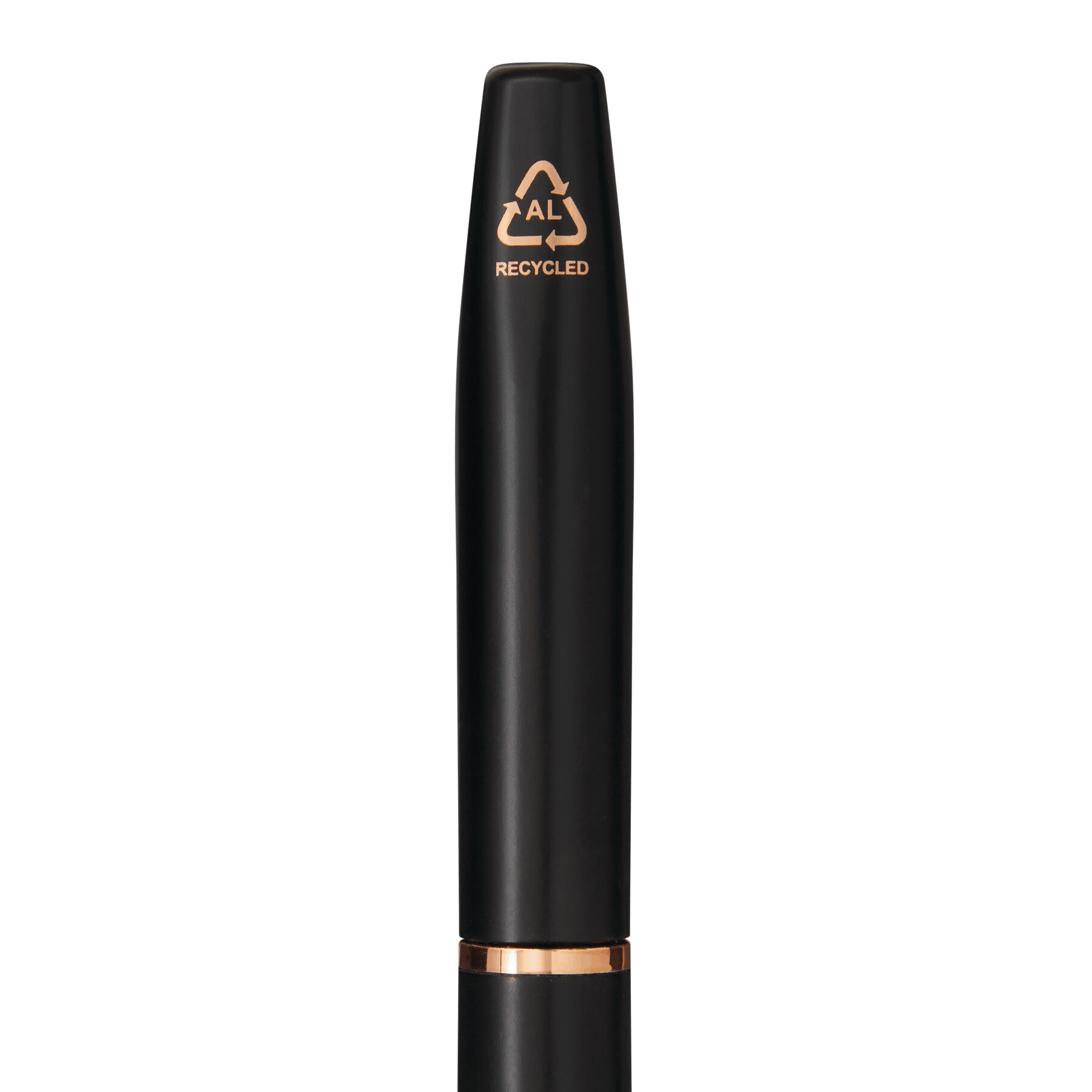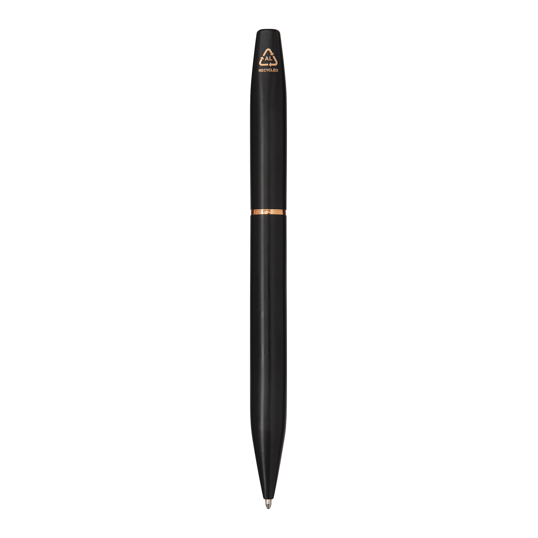 Bolígrafo de aluminio EXPRESSIVE: cuerpo de metal mate, fabricado en aluminio reciclado, con mecanismo de giro, clip y anilla de color plata, parte superior con base de cromo plateado brillante para grabar, recarga de metal, tinta azul, en caja