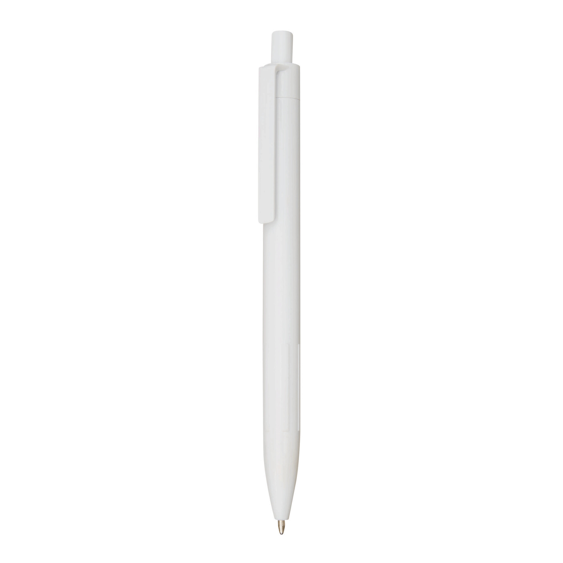 Bolígrafo STACCATO: cuerpo de plástico reciclado, zona de agarre estriada, mecanismo de presión, tinta azul.