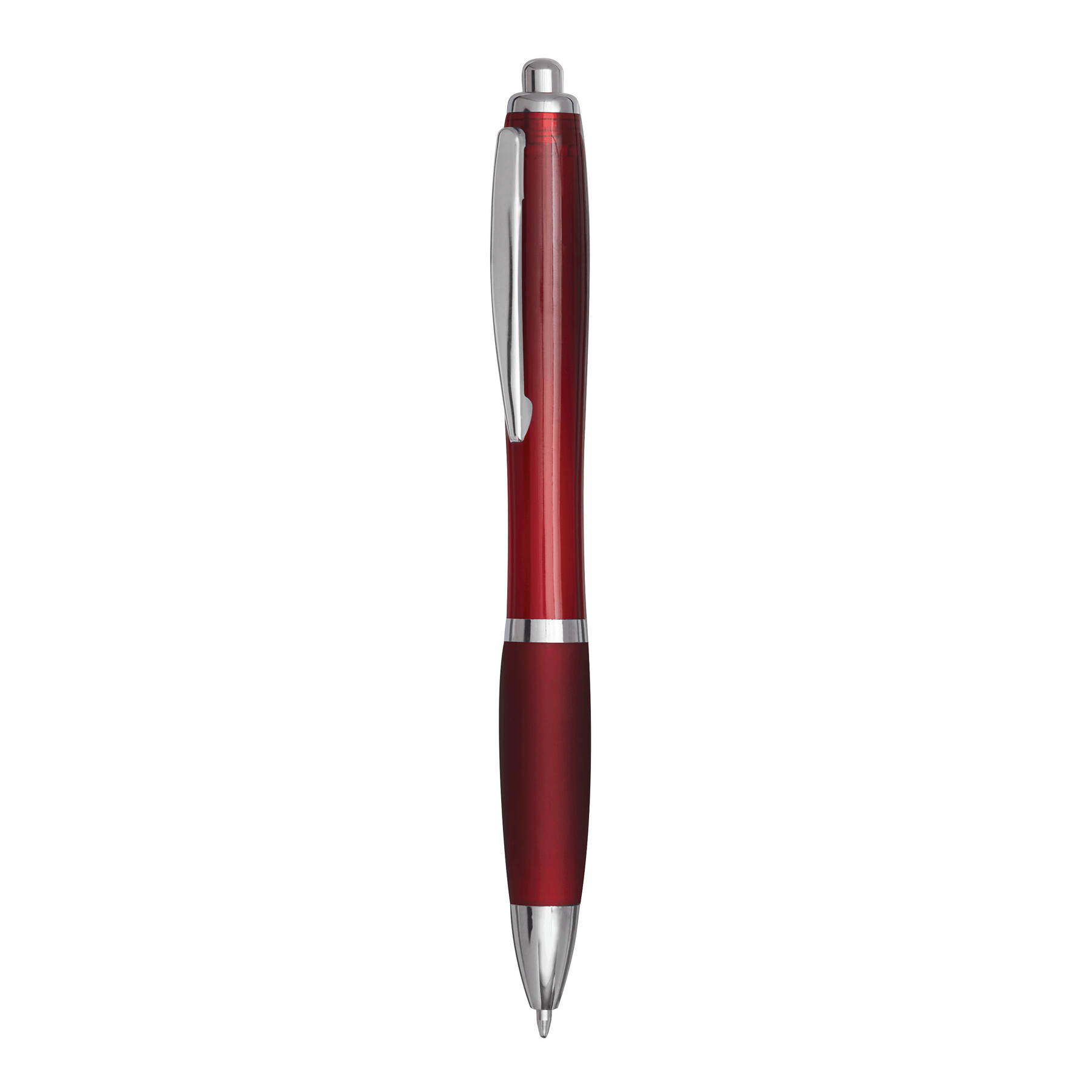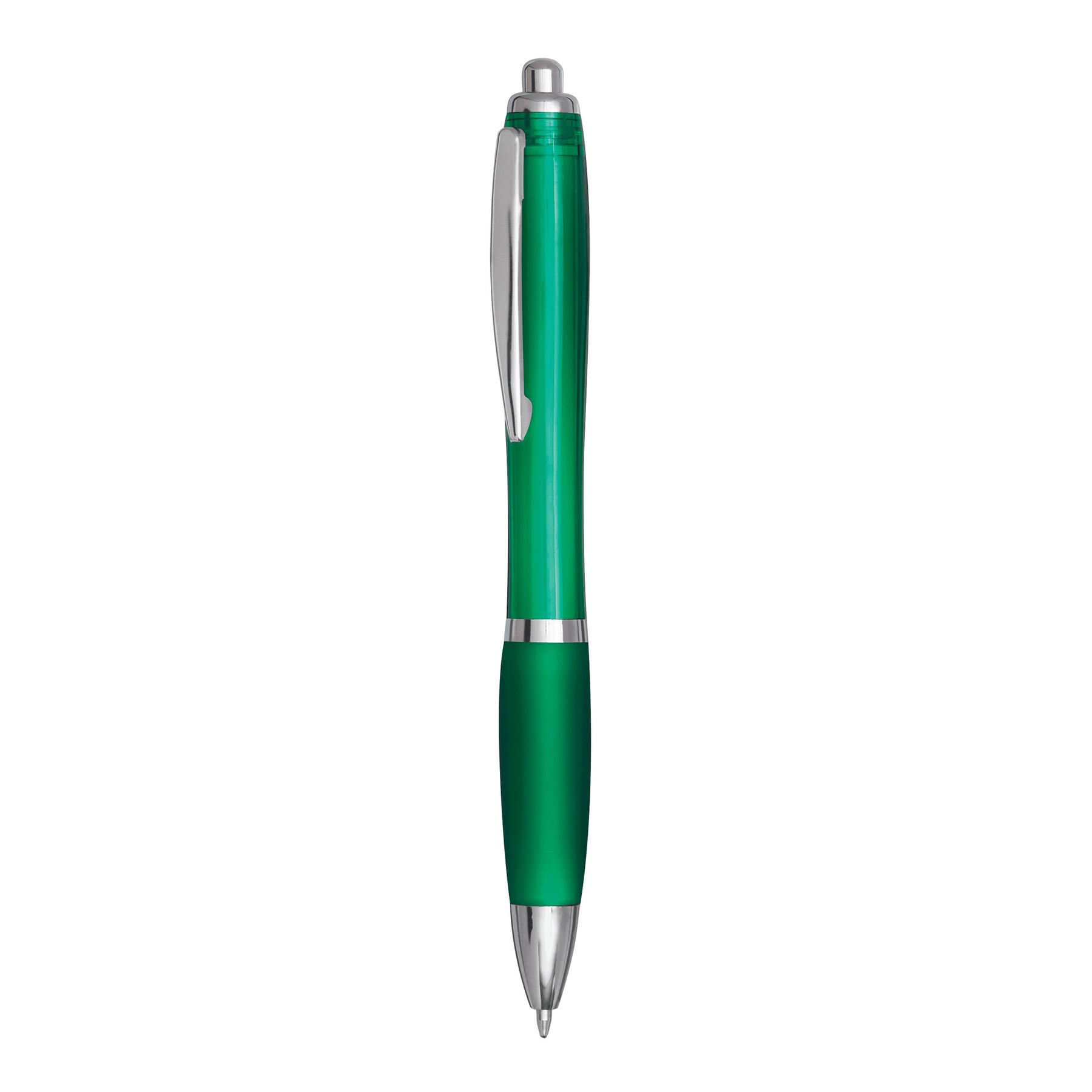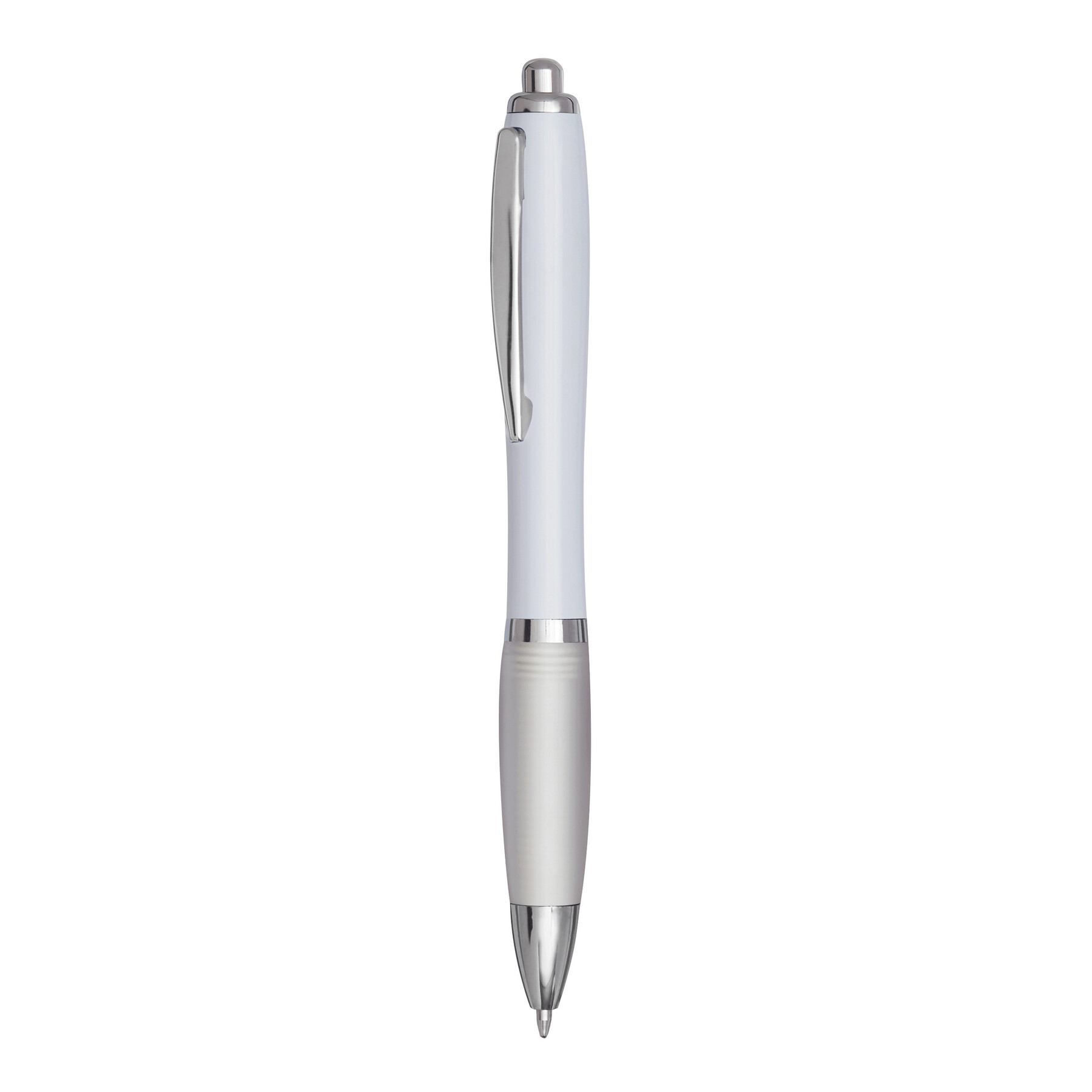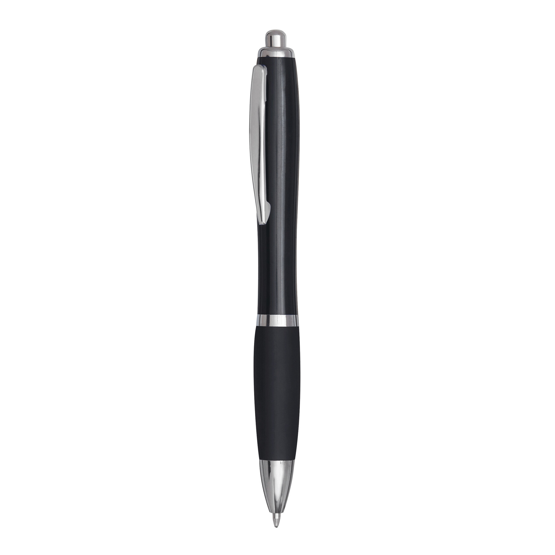 Bolígrafo SWAYRABS: con cuerpo cónico de plástico reciclado, zona de agarre engomado, mecanismo de pulsador, recambio tinta azul.