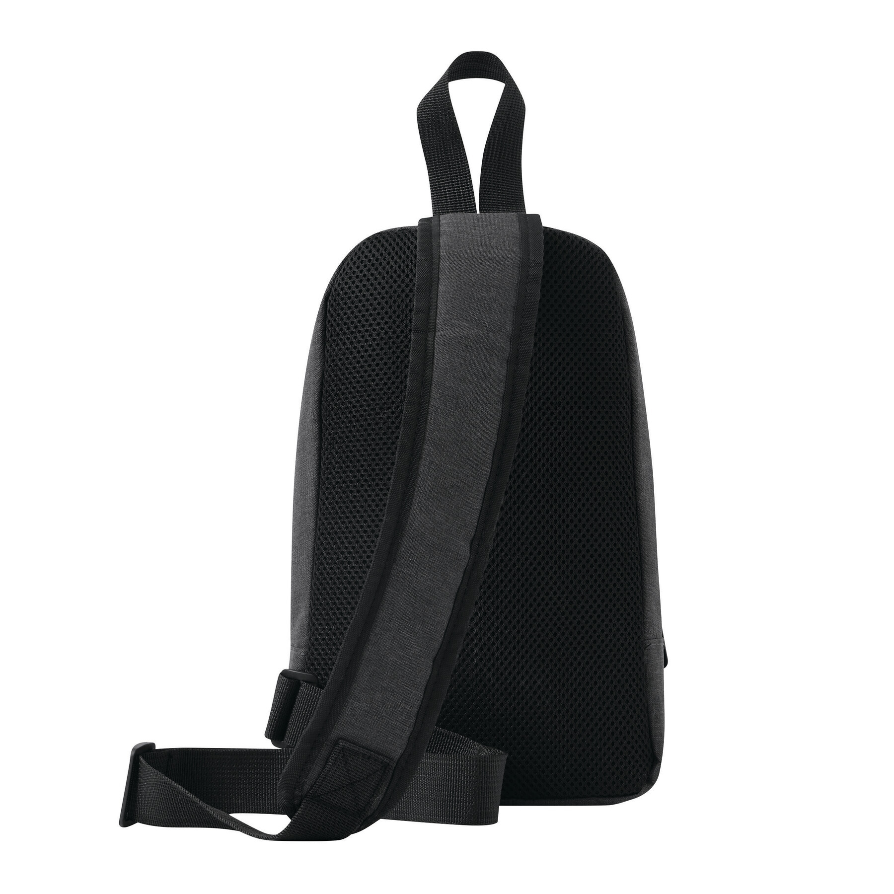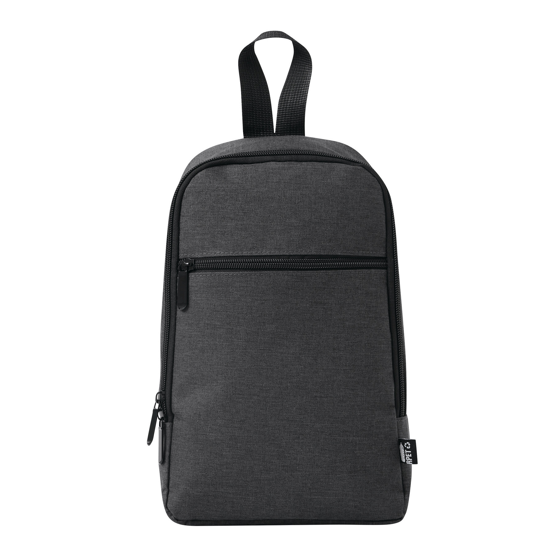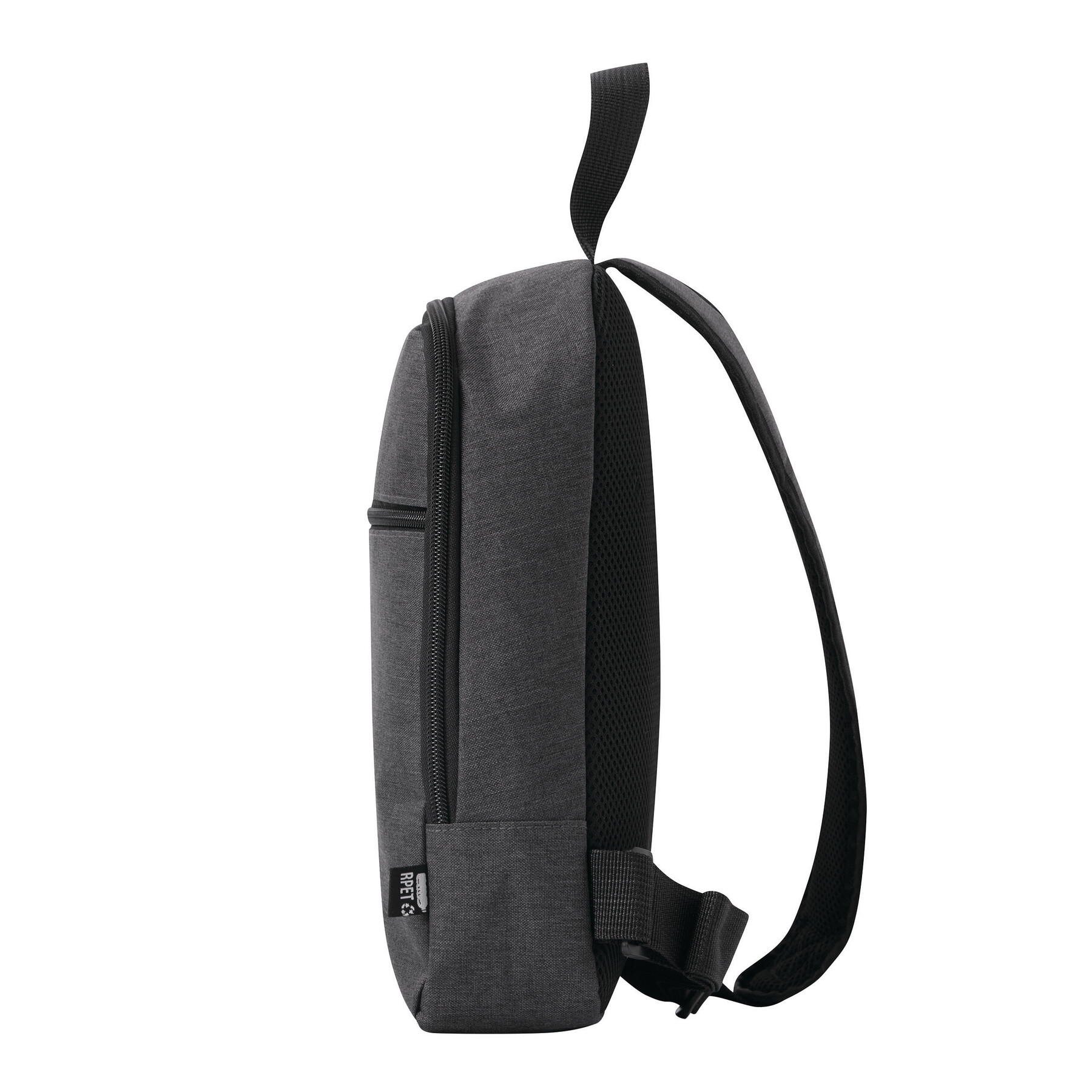 Bolso bandolera EDERN: fabricada en poliéster reciclado (rPET), compartimento principal con cremallera, bolsillo frontal con cremallera, asa de mano, correa de hombro acolchada y ajustable, zona trasera acolchada