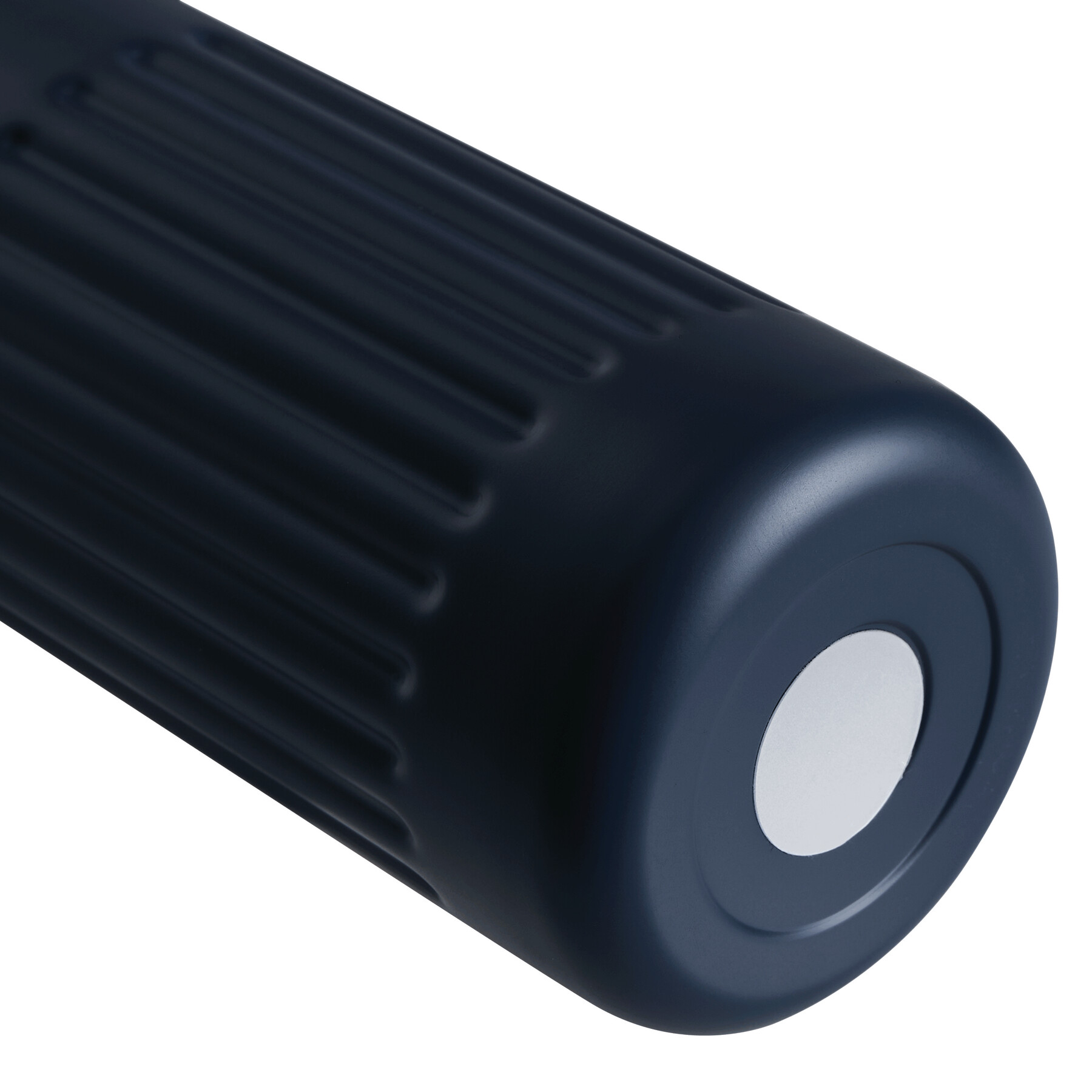 Botella de vacío WAVE TRAIL, de doble pared: interior de acero inoxidable reciclado, exterior de acero inoxidable, tapa con tapón de rosca de seguridad, anillo de sellado de silicona y correa de plástico, capacidad aprox. 500 ml, mantiene el calor durante aprox. 8 horas y el frío hasta 12 horas, en una caja.