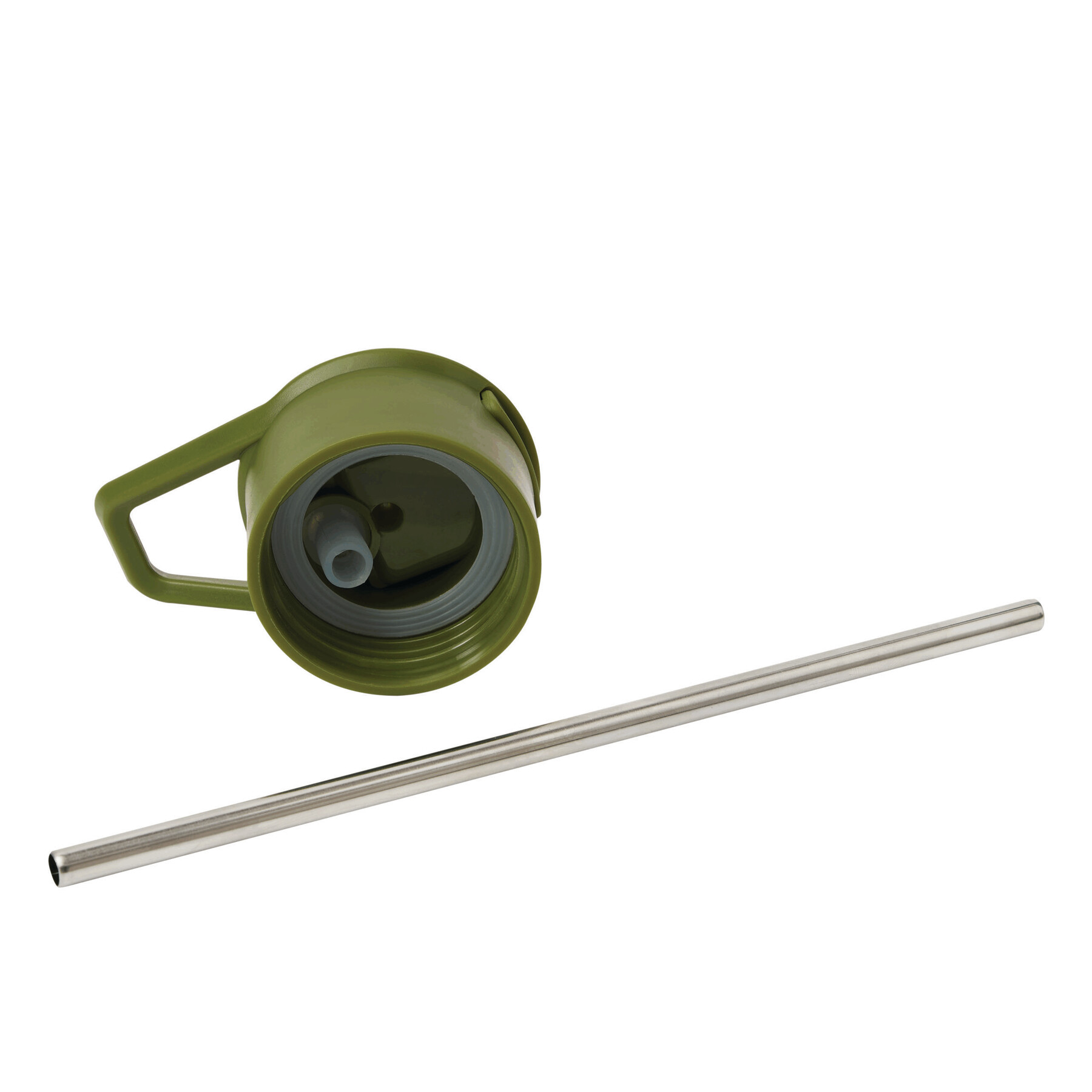 Botella térmica TREKSTEEL, de doble pared (interior y exterior) de acero inoxidable, con tapón de rosca de plástico a juego, anillo de sellado de silicona, asa de transporte, tapa abatible fácil de abrir con una sola mano, pajita integrada de acero inoxidable con boquilla de silicona, capacidad aproximada de 600 ml, mantiene las bebidas calientes durante aproximadamente 8 horas y frías hasta 12 horas. Presentada en caja de regalo.