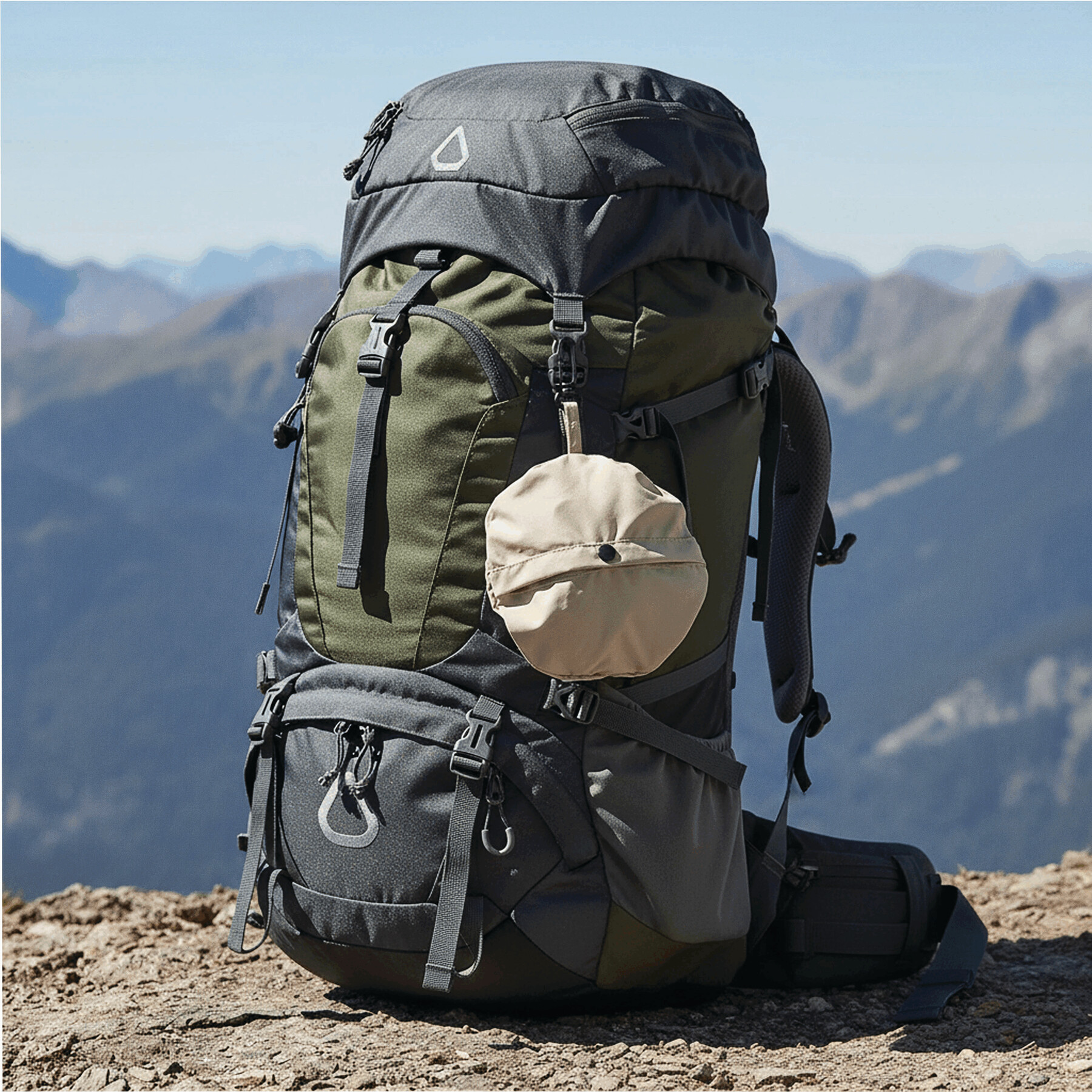 Gorro de pescador SHADEGO: repelente al agua, cordón con botón de tope para ajustar a la cabeza, se puede transformar en una bolsa con un botón a presión, con gancho de mosquetón (el mosquetón NO es apto para escalada)