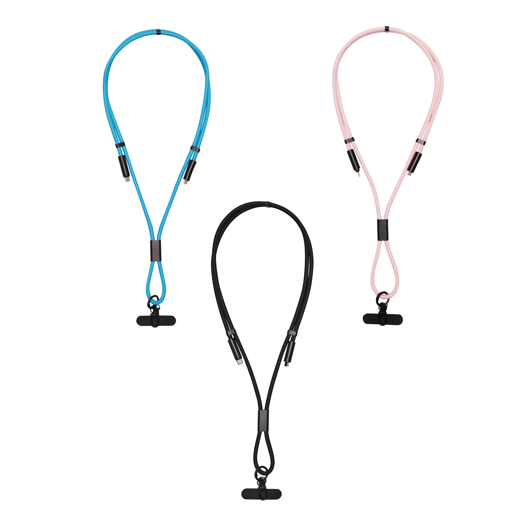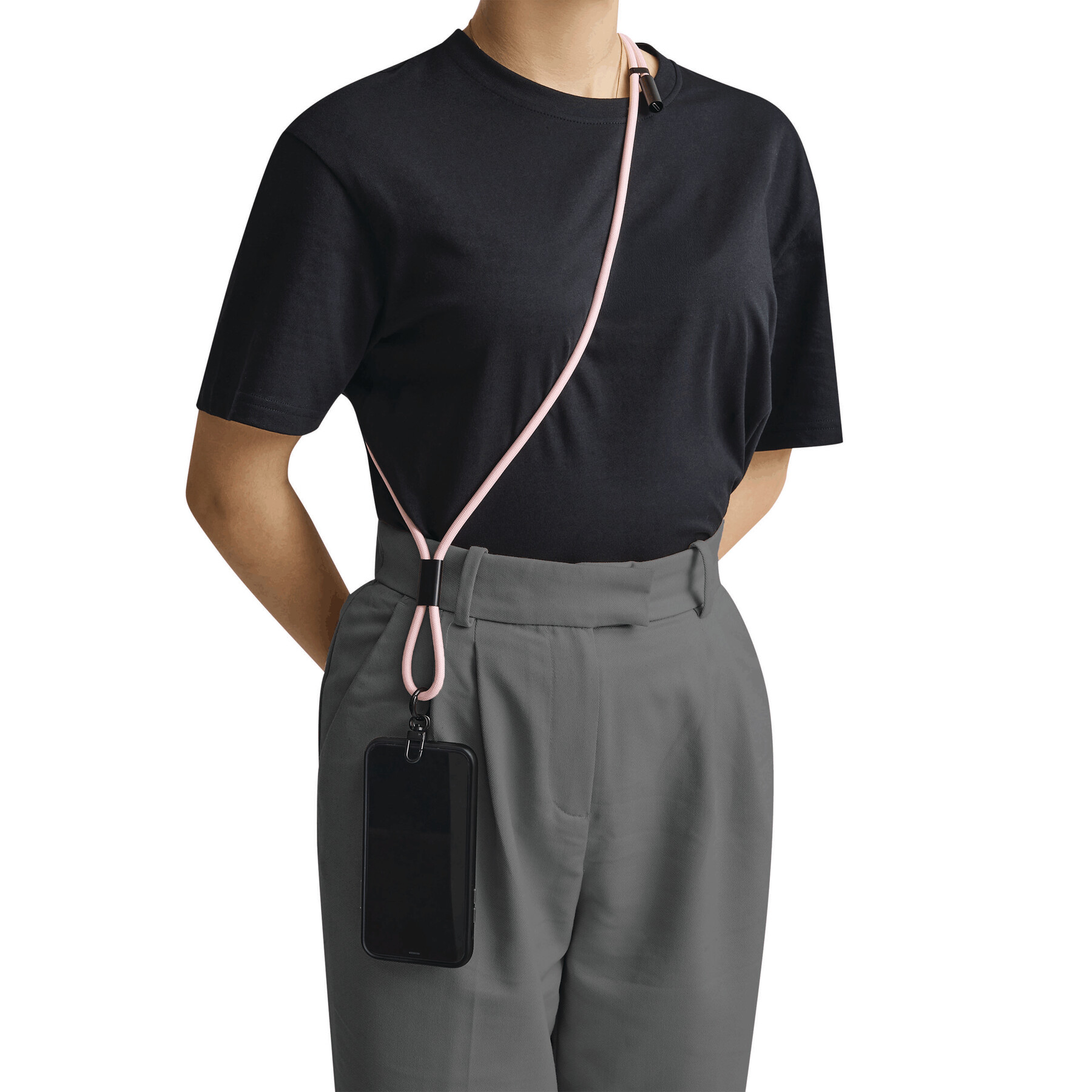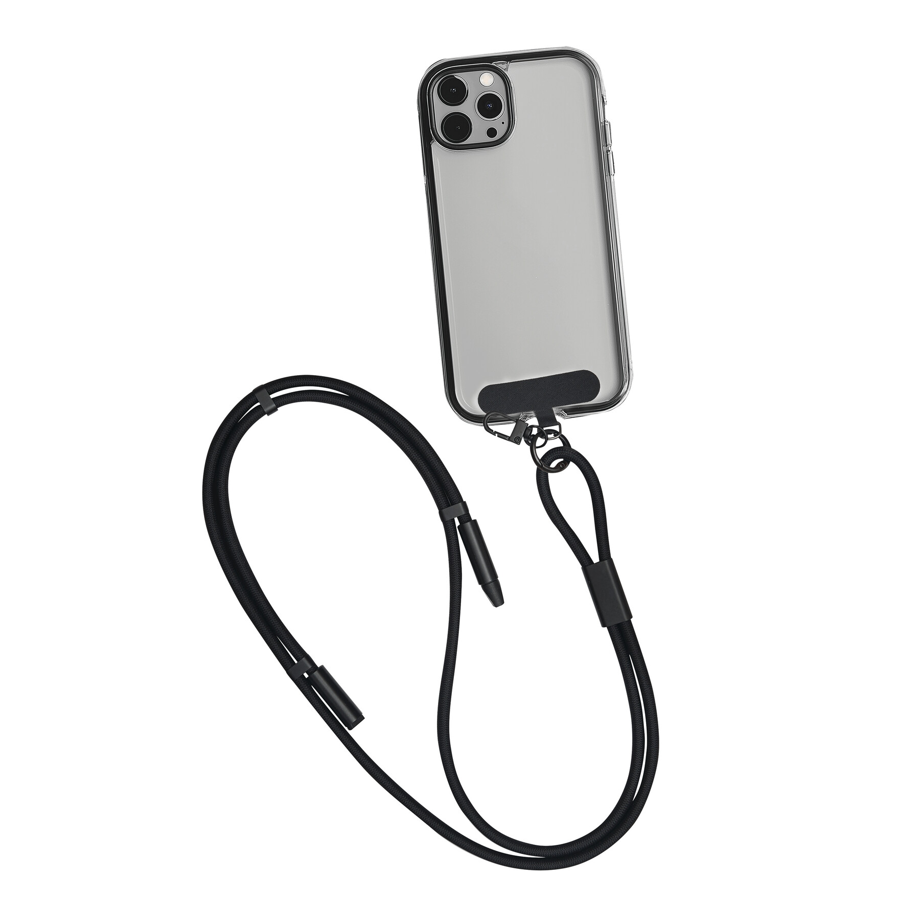 Lanyard universal CARRY para smartphones: con un pequeño parche para colocar entre el teléfono y la funda (solo apto para fundas con protección completa), un pequeño mosquetón para llaves, etc. El cordón se puede ajustar fácilmente en tamaño (para llevar cruzado o como collar), el cordón también es un cable de carga de 65 W con transmisión de datos, USB tipo C, cable con revestimiento de tela (longitud del cable aprox. 144 cm)
