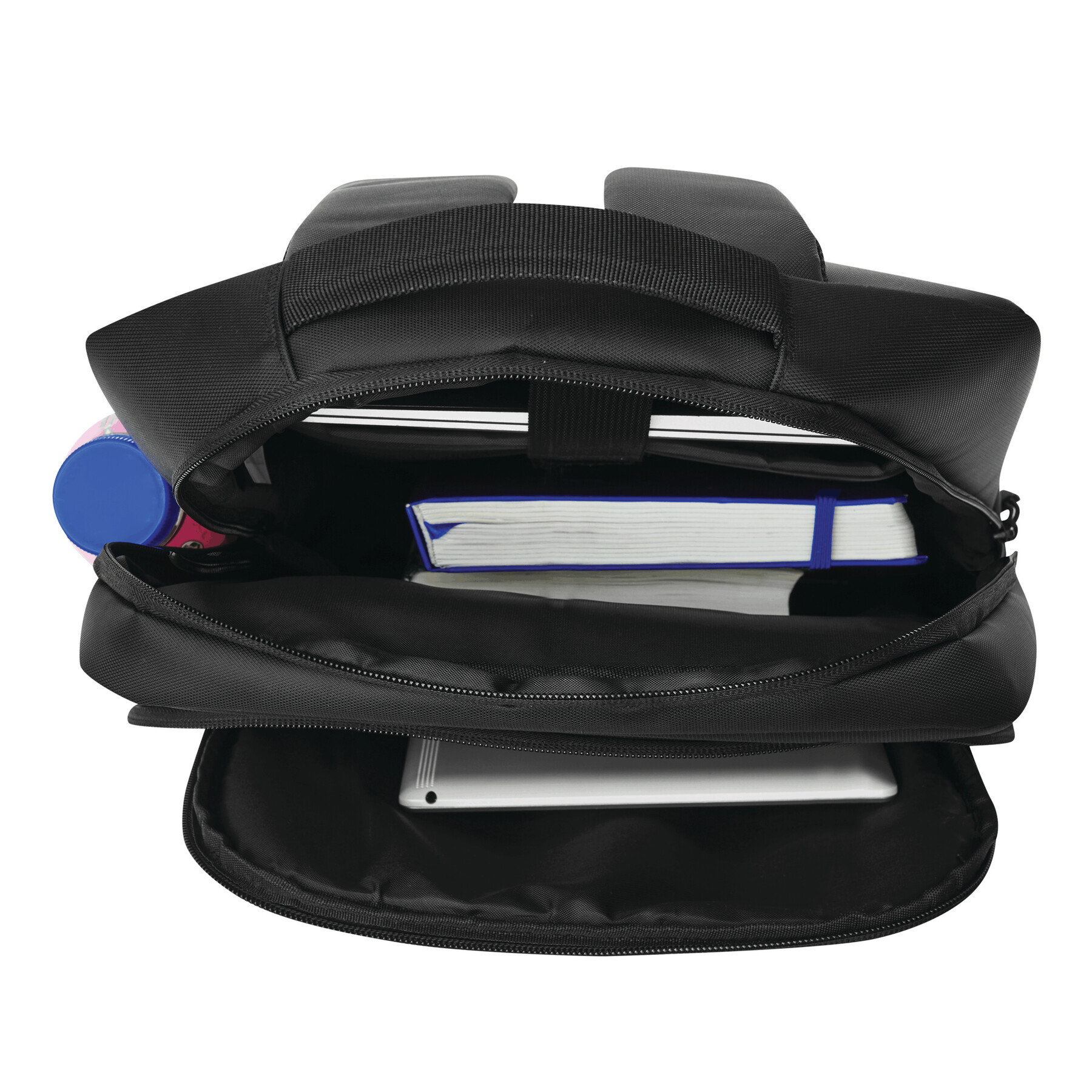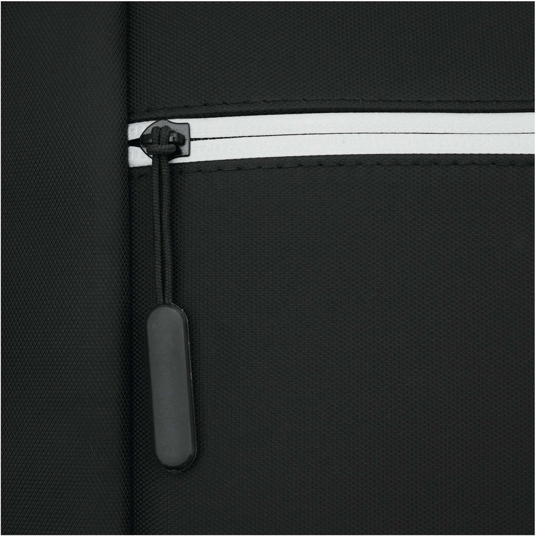 Mochila PRINCETON: 1 compartimento frontal con cremallera y organizador (2 bolsillos interiores y 2 portabolígrafos), 1 bolsillo frontal con banda reflectante, 1 bolsillo lateral, 1 compartimento principal con cremallera y acolchado, compartimento interior para ordenador portátil o tablet, asa acolchada, correas acolchadas ergonómicas para los hombros y panel trasero acolchado