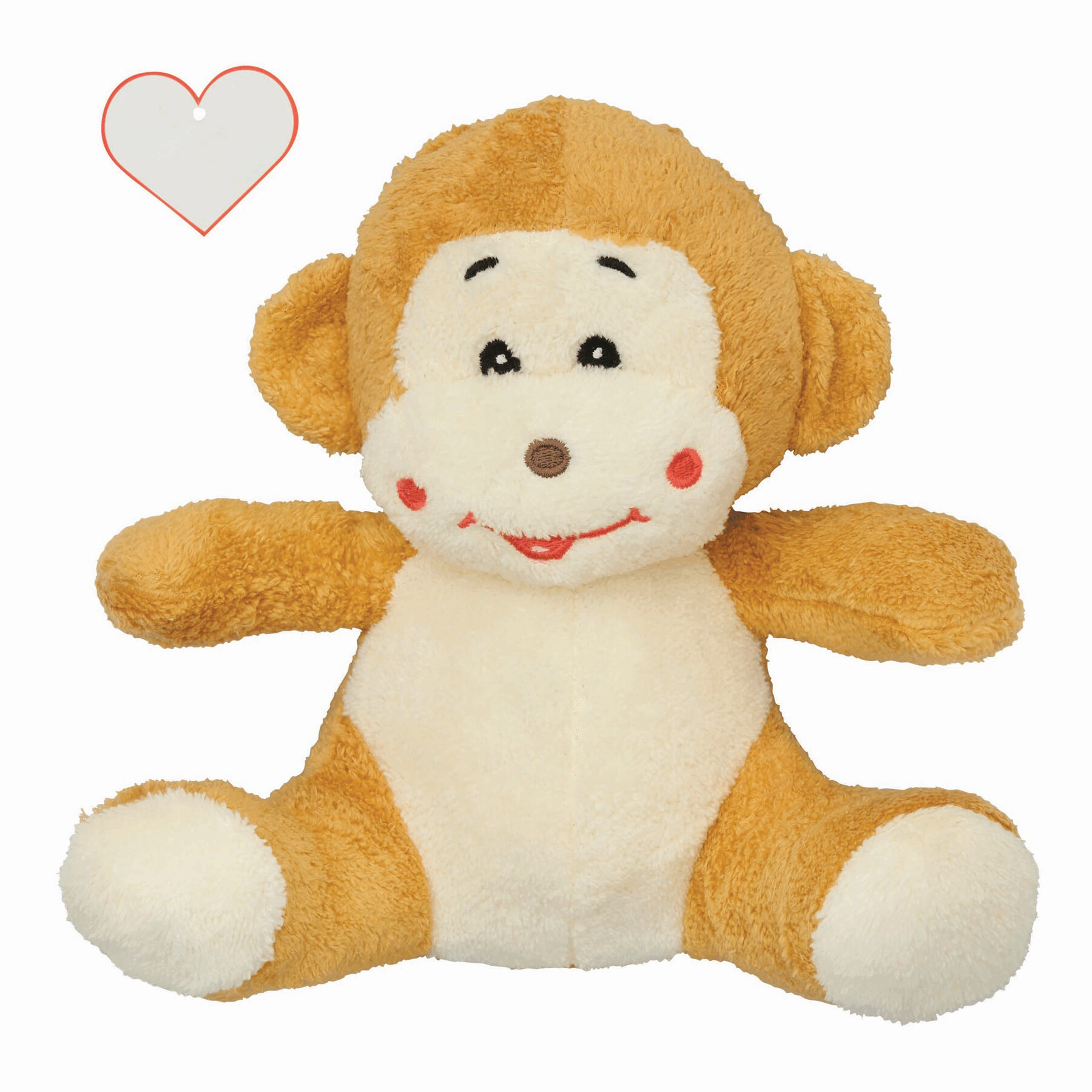 Mono de peluche ELIAS: con suave pelo y corazón para imprimir logo ? Fabricado en Europa