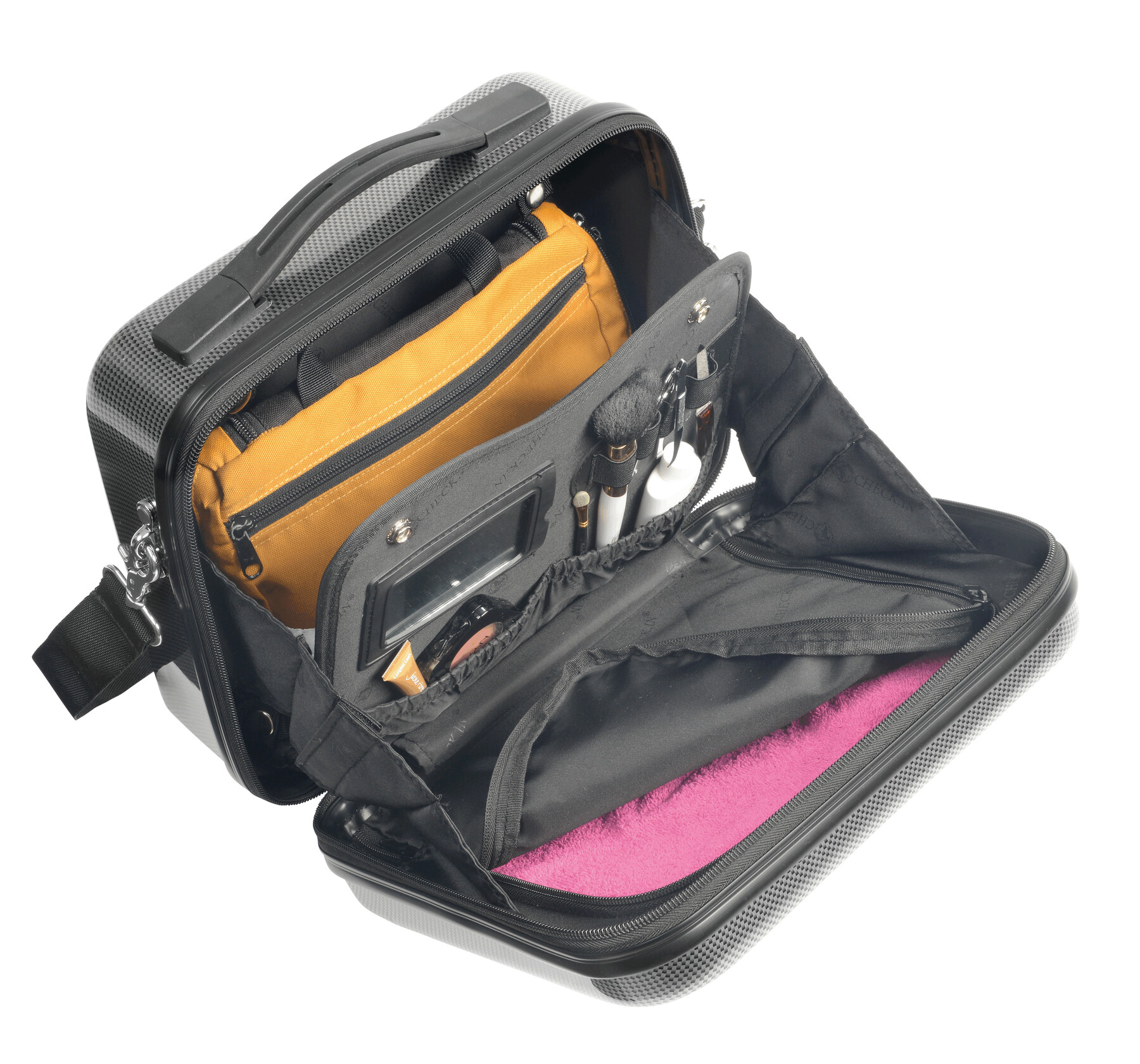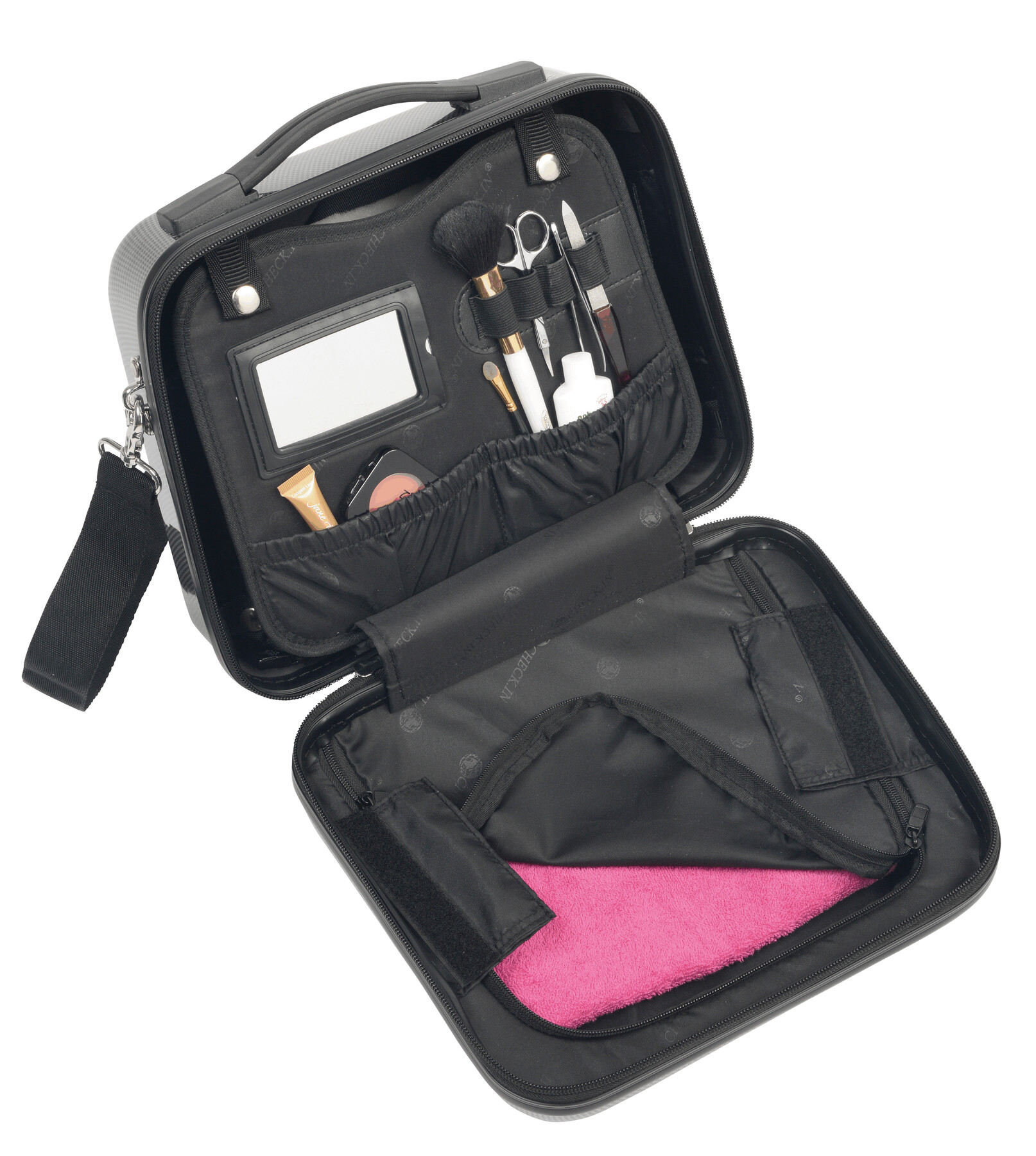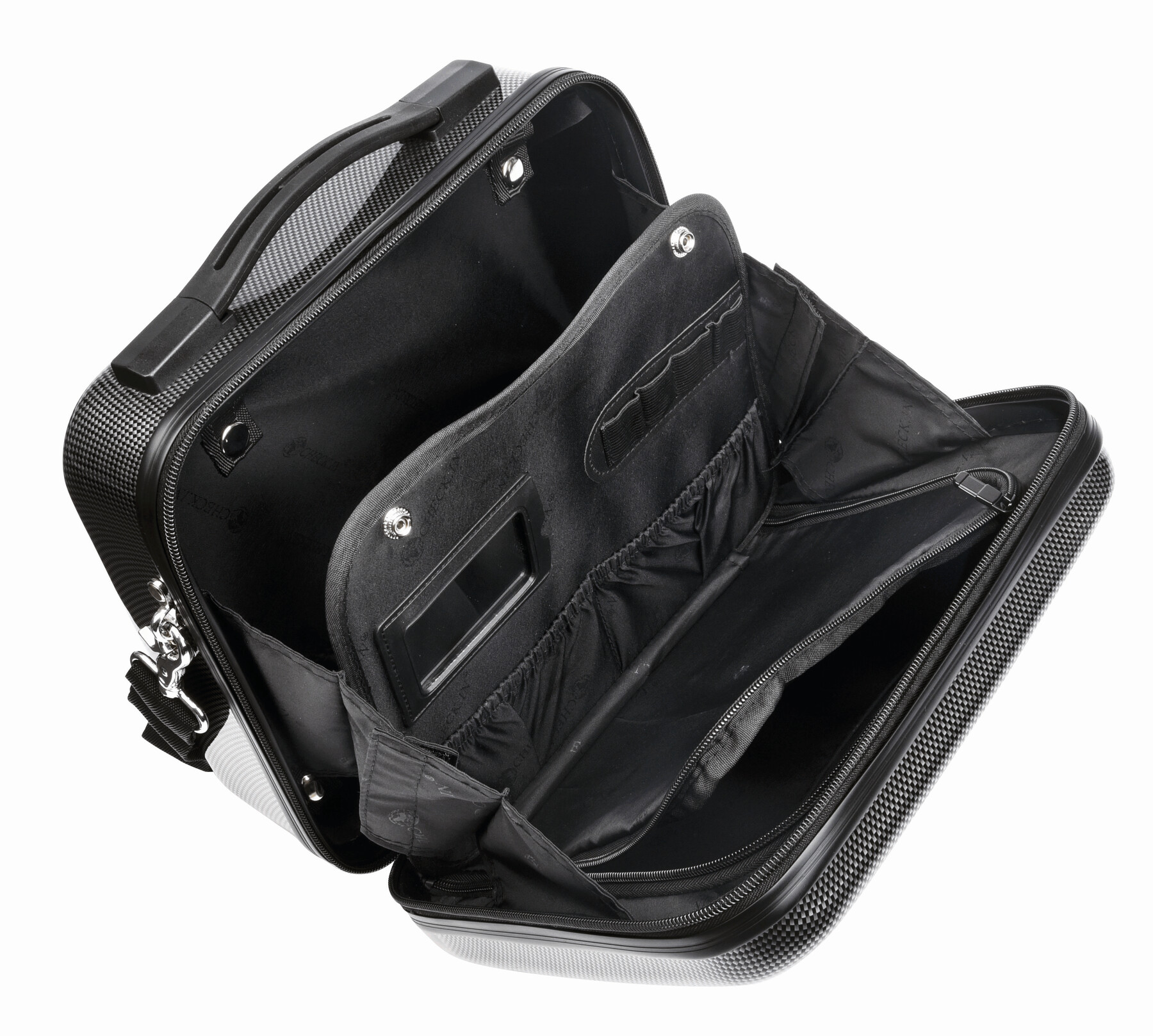 Neceser de viaje LONDON 2.0: equipamiento y diseño exclusivos, con capacidad a ambos lados, bolsillo principal con divisor flexible incl. espejo, varias presillas flexibles y bolsillos con bandas elásticas, bolsillo interior desmontable con cremallera, bandolera desmontable y ajustable, se puede acoplar al sistema trolley, incl. cerradura de combinación