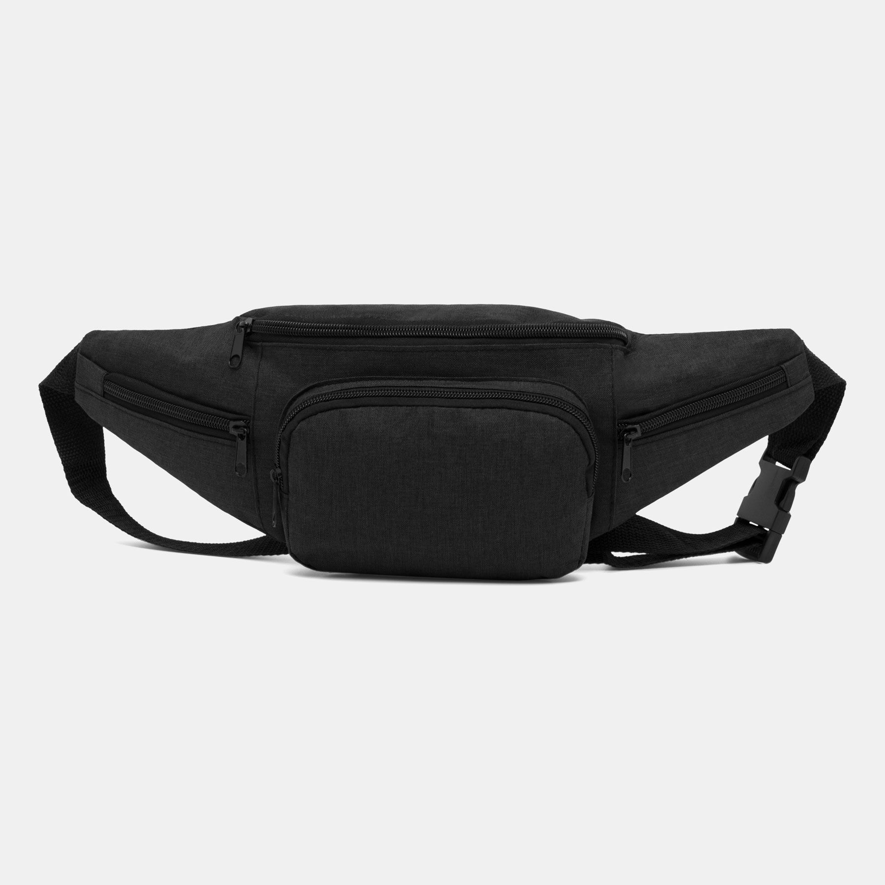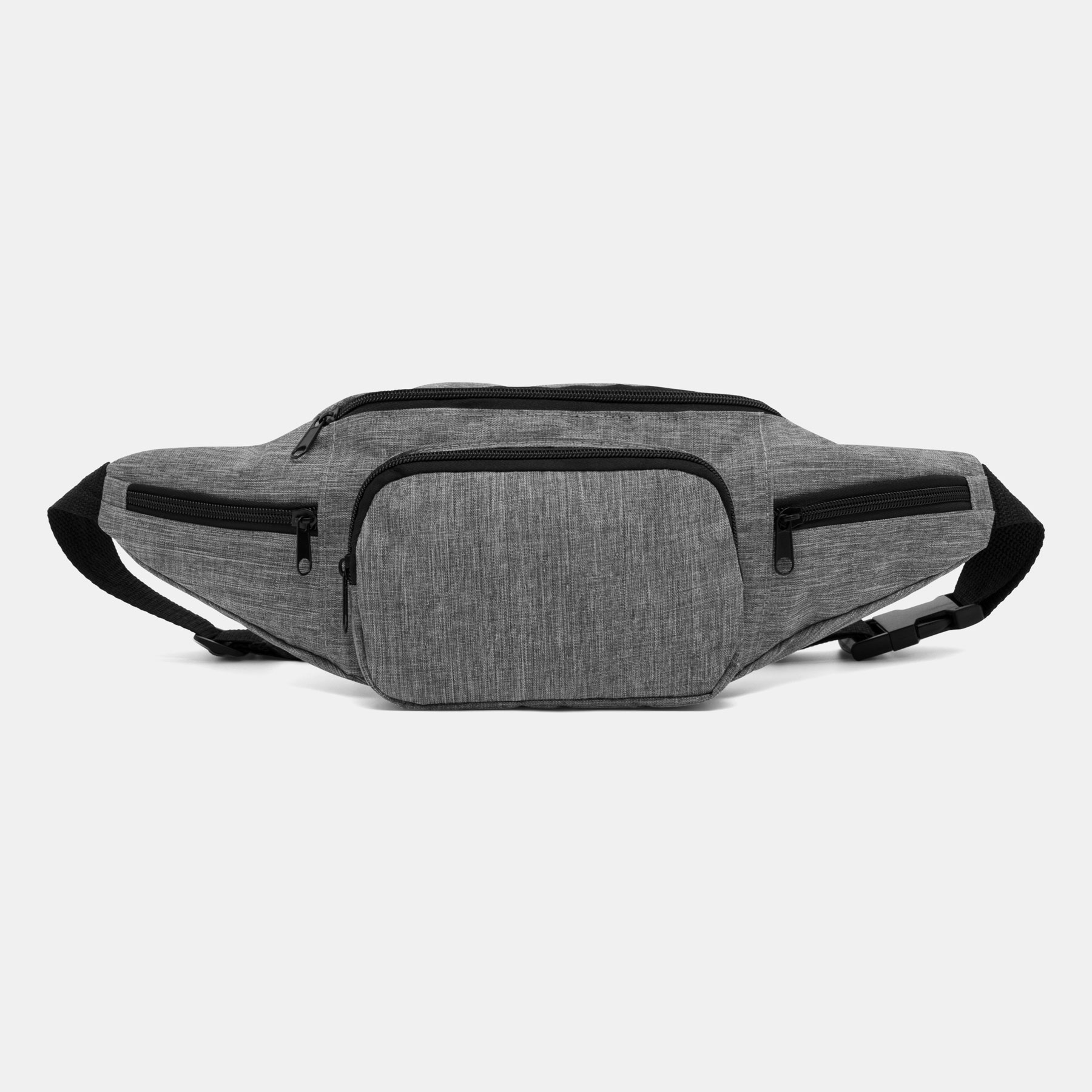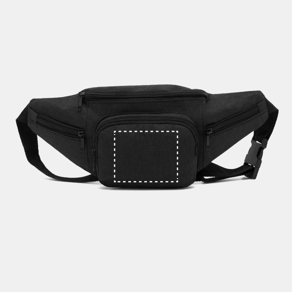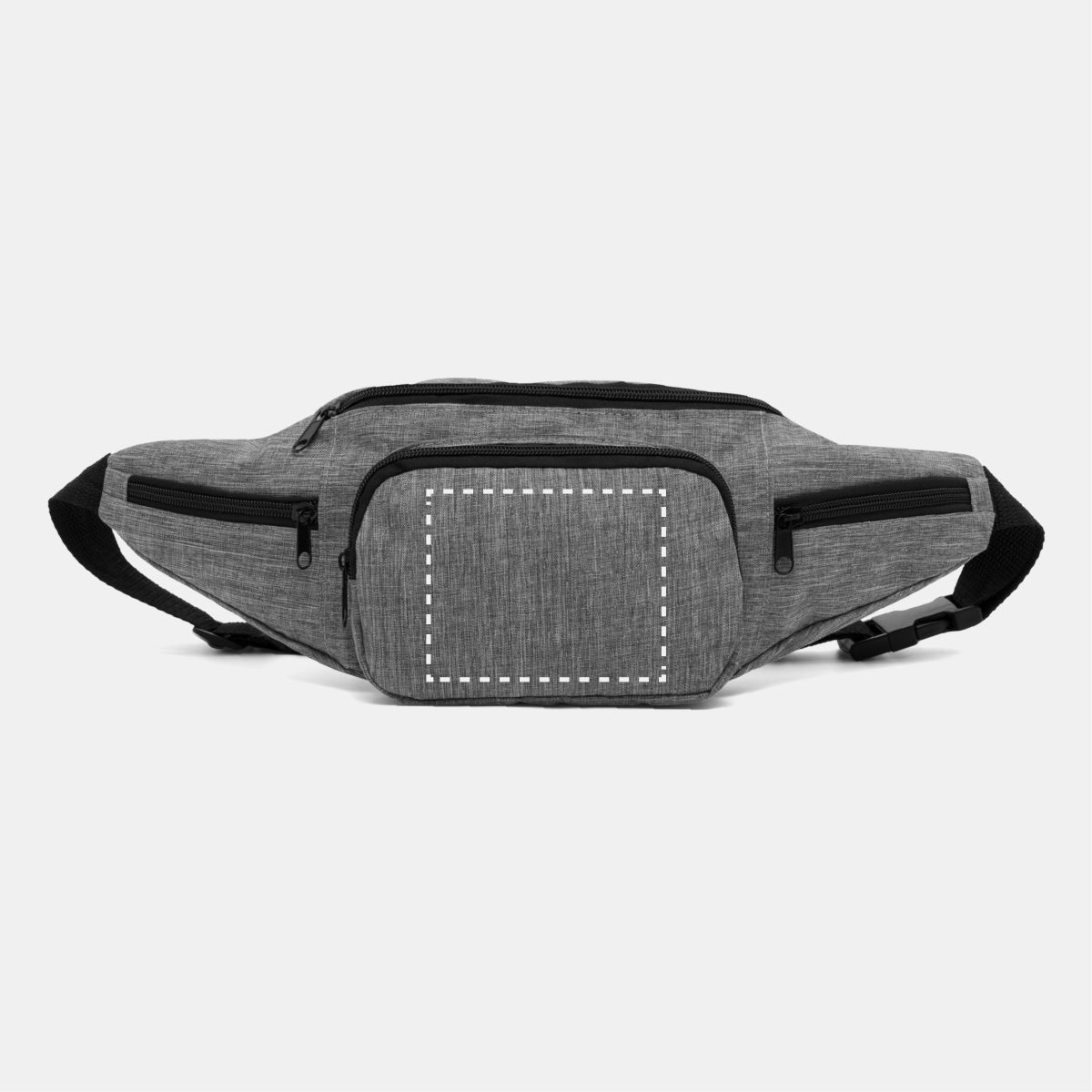 Riñonera QUAD: espacioso compartimento principal con cremallera, 1 bolsillo frontal con cremallera, 2 pequeños compartimentos laterales con cremallera, cinturón ajustable con cierre a presión