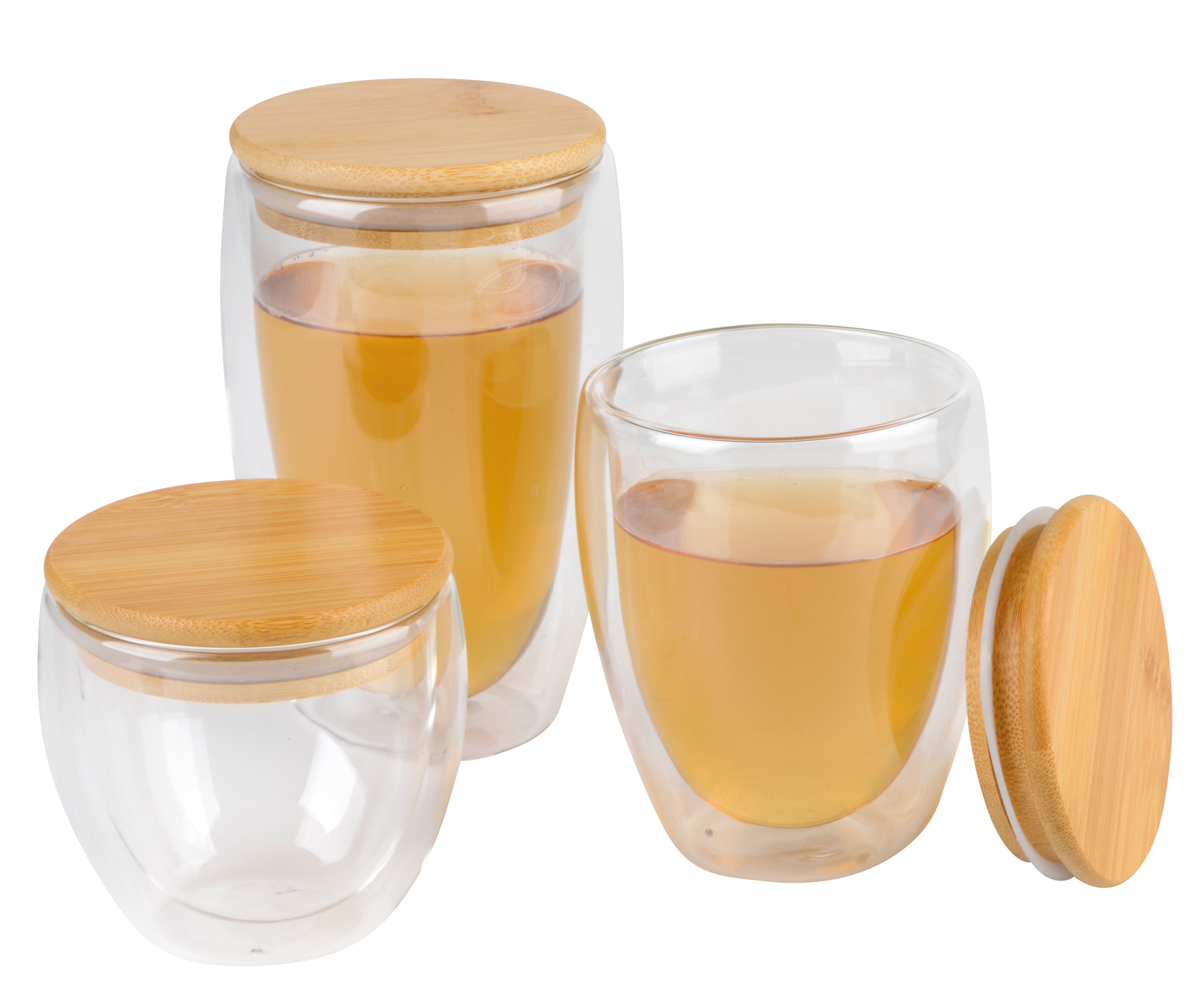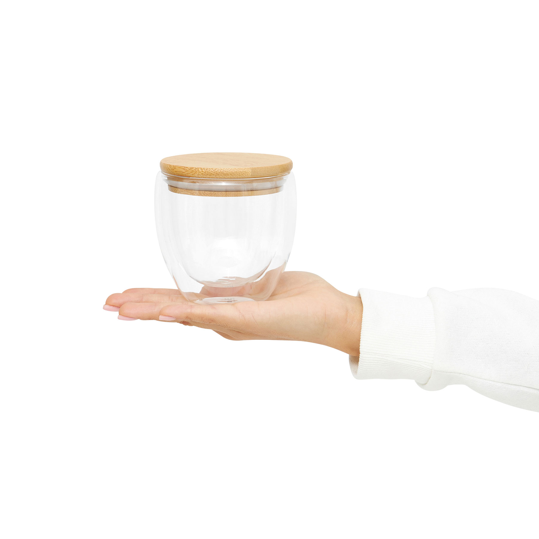 Vaso de doble pared BAMBOO ART S, con tapa de bambú: transparente, resistente a la temperatura, capacidad aprox. 250 ml