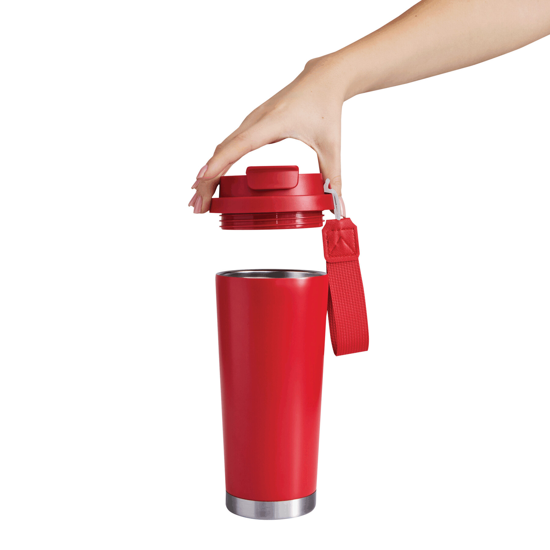 Vaso isotérmico MUG2GO, de doble pared: interior de acero inoxidable reciclado y exterior de acero inoxidable, tapón de rosca de plástico seguro del mismo color con doble función, boquilla integrada y pajita plegable, junta de silicona y asa de transporte de rPET, capacidad aprox. 500 ml, mantiene las bebidas calientes durante aprox. 8 horas y frías hasta 12 horas, presentada en caja de regalo.